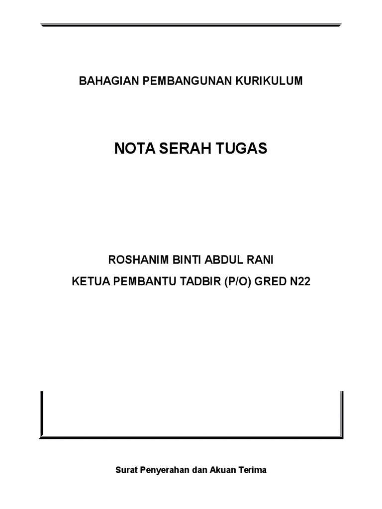 Surat penyerahan dan akuan terima. Surat penyerahan dan akuan terima nota serah tugas.